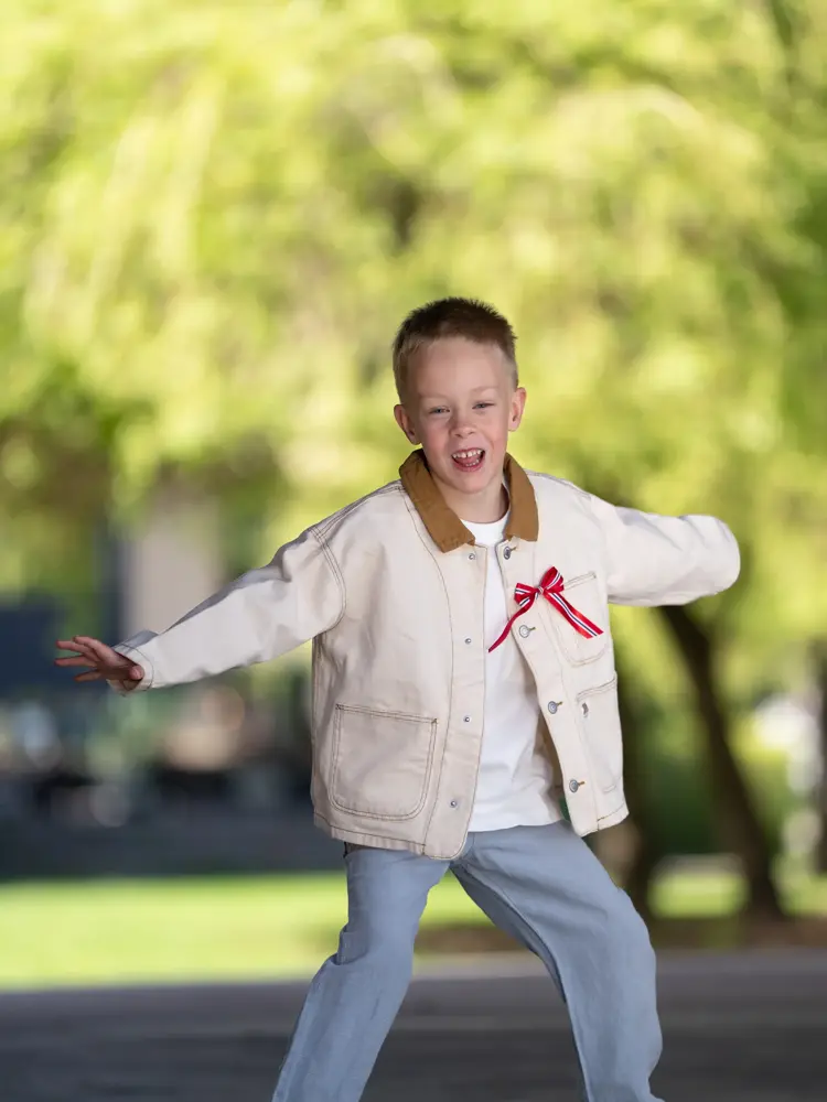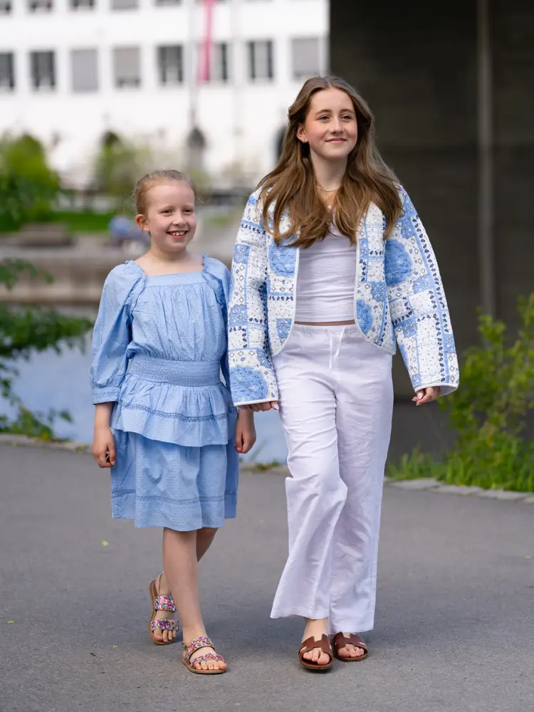 -En lett cardigan eller jakke må de fleste ha på starten av dagen. Våren så langt har vært kjølig, så får vi se hvordan været utvikler seg fram mot 17. mai. Bunader varmer litt ekstra, men for de som går i noe annet er for eksempel en liten denimjakke eller sesongens cargojakke med kontrasterende krage gode valg. Lommer er også noe barn elsker, og da kan de kanskje oppbevare noen småpenger der, så de har til iskiosken, sier Elen.