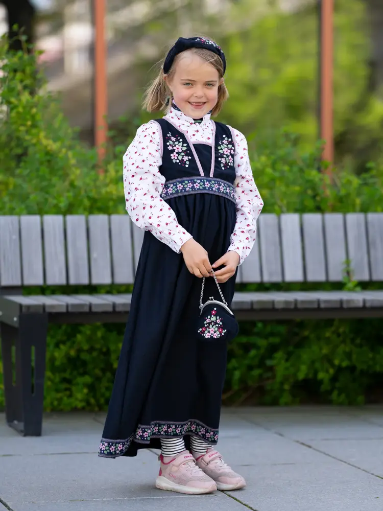 Bunad fra Brando, kr 299 for skjorte, kr 799 for kjole, kr 99 for hårbøyle, kr 149 for veske.