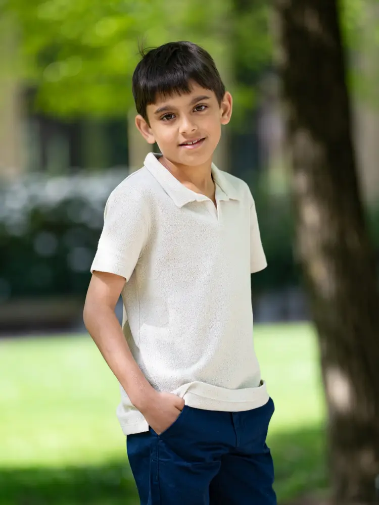 -En løs kortermet piquetrøye er kul til mørke bukser og behersker balansen mellom avslappet og pyntet. En strikket piquégenser over en t-skjorte gir samme effekt. Det ser et snev formelt ut, og kan derfor gjerne brukes til lys denim eller chinos for en ledig og komfortabel stil på 17. mai. Jeg syns barn i piqué er så fint, og kult. Det er et plagg som passer dem overraskende godt, og særlig om du vil pynte dem litt, uten å stivpynte dem, sier Elen.
