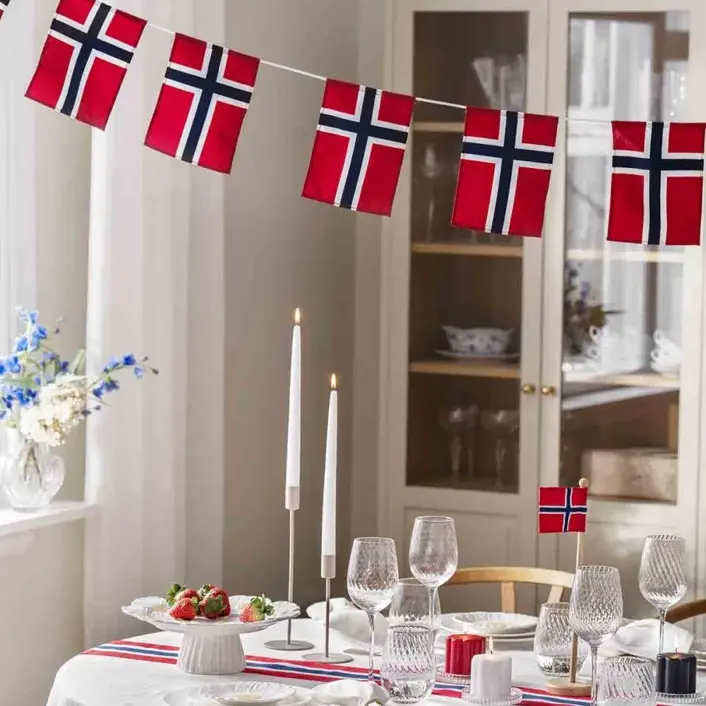 Du trenger imidlertid ikke en diger flaggstang for å flagge – små flagg gjør seg også utmerket som dekor når du skal skape den rette 17. mai-stemningen.