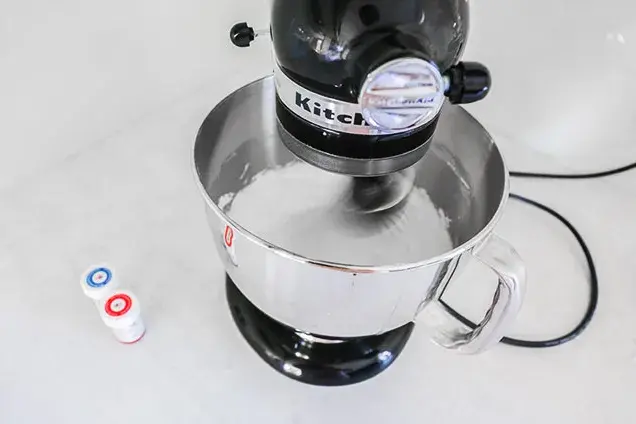 - Pisk eggehviten på middels hastighet til det blir hvitt skum.
