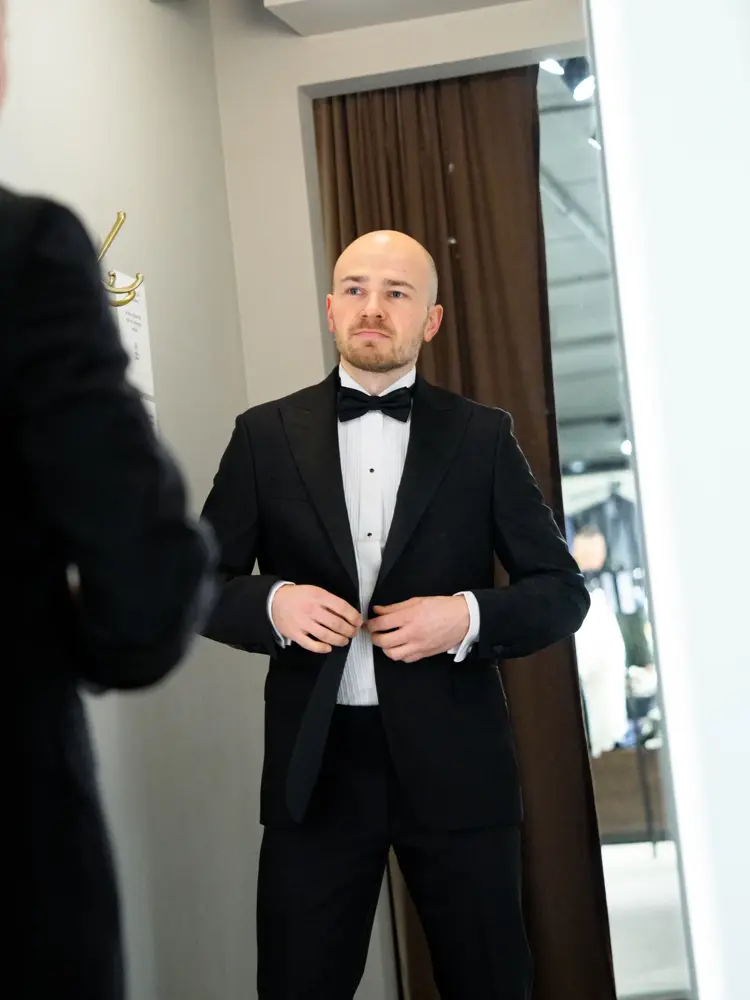 Smokingen er en tidløs investering som utstråler både raffinement og eleganse, og hos Follestad finner du et bredt utvalg av skreddersydde alternativer som er laget for å passe perfekt til bryllupsdagen. Enten du ønsker en mer tradisjonell svart smoking eller en moderne vri, kan du være trygg på at du vil se både stilfull og sofistikert ut når du står ved brudens side.
