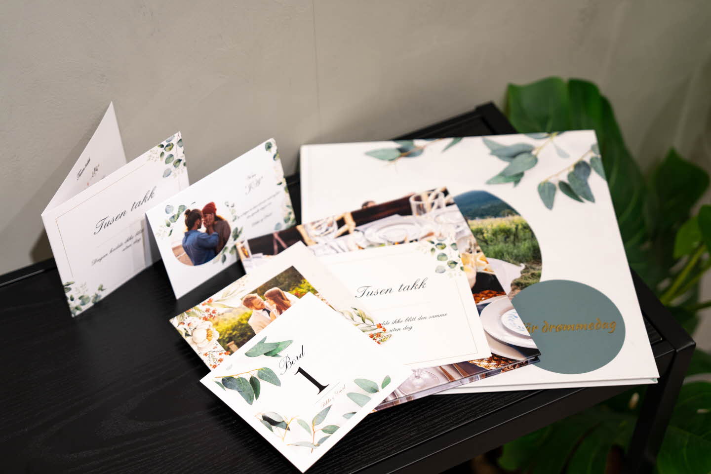 De fleste sender ut fysiske invitasjoner, og på selve dagen er bordkort og menyer en naturlig del av borddekkingen. Etter bryllupet er det vanlig å sende takkekort til gjestene. En gjennomgående stil skaper et helhetlig uttrykk, og dersom valgmulighetene virker overveldende, kan de erfarne ansatte hos Cewe Japan Photo hjelpe deg med å utforme akkurat det du ønsker.