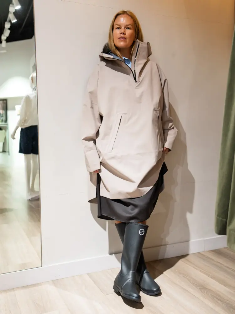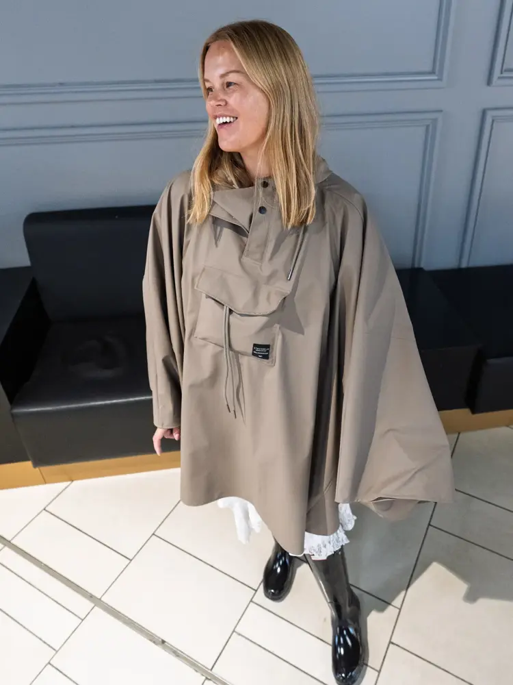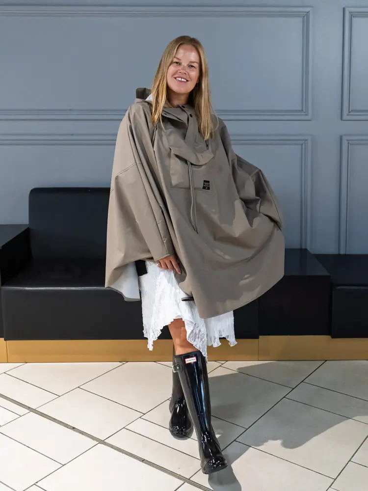 Mye har skjedd på regntøysfronten. Ponchoer fra kjente motemerker, nyere merker dedikert til trendy regntøy og tidløse plagg som trenchfrakken i vannavstøtende materialer oppdaterer stilen din på regnfulle dager. Ponchoer kan du attpåtil slenge over en ytterjakke, og rulle sammen og pakke vekk dersom det blir opphold. For øyeblikket ser vi duse beige toner mot det brune, og litt lysere toner på et plagg som regnponcho funker veldig bra.