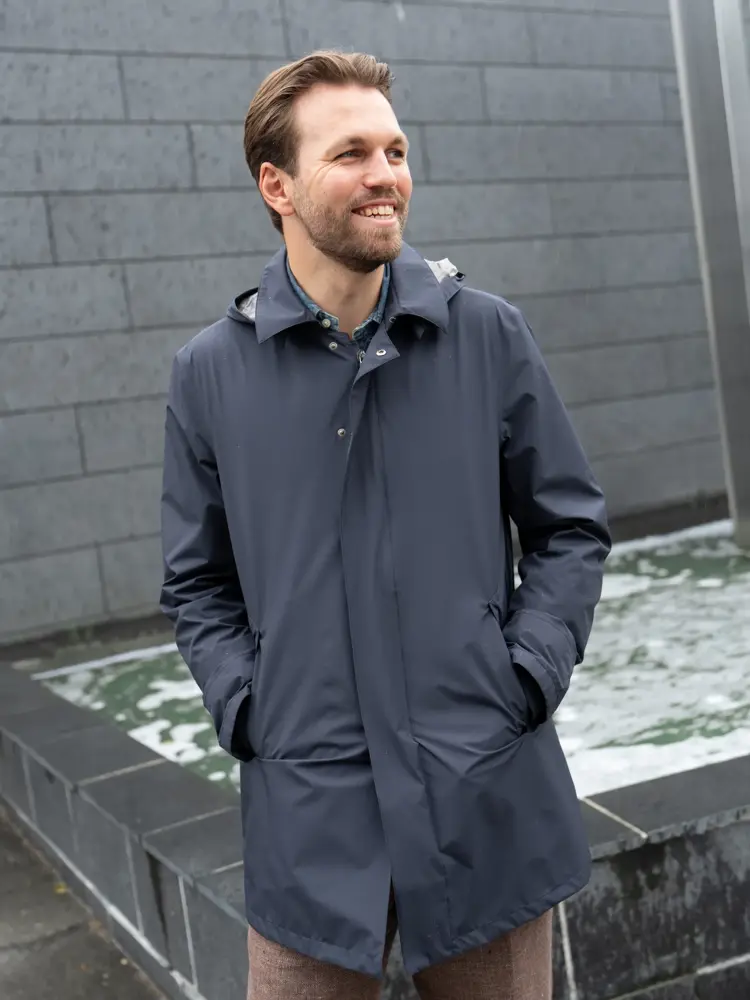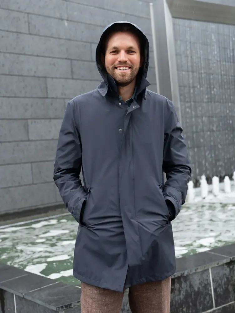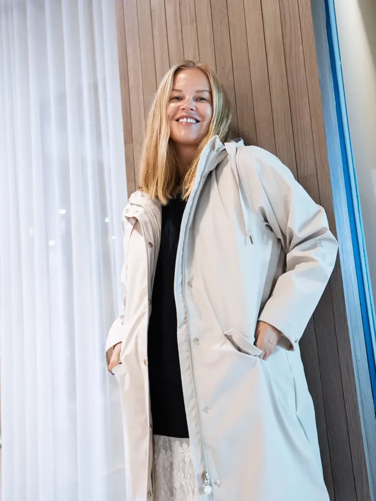 Den klassiske regnjakken eller frakken er et sikkert valg, enkel i snitt, men funksjonell. Tradisjonelt i mørkeblått, svart eller mørkegrønt, men nå også i farger og duse toner av beige. Dermed blir uttrykket mer lekent og lett. En klassiker i ny drakt, rett og slett.