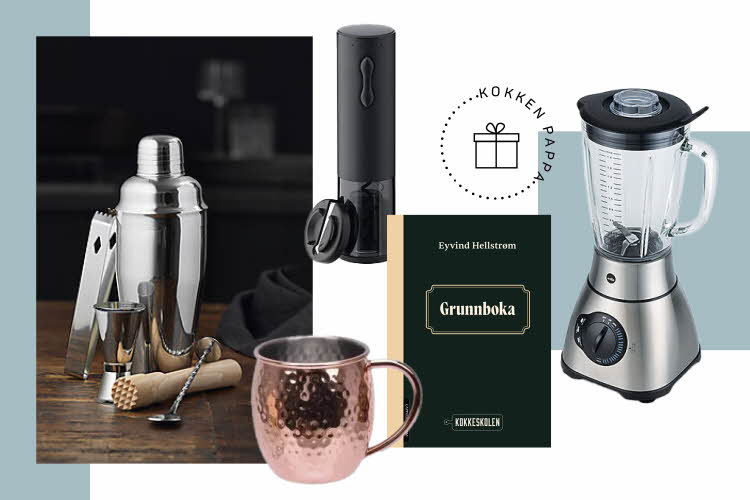 En god kokebok kan gi mange smakfulle opplevelser fremover og med en blender kan han lage de beste supper, smoothier og puréer. Hvis han er glad i å invitere til selskap er en god vinopptrekker, drinksett og egne Moscow Mule kopper noe han trenger.