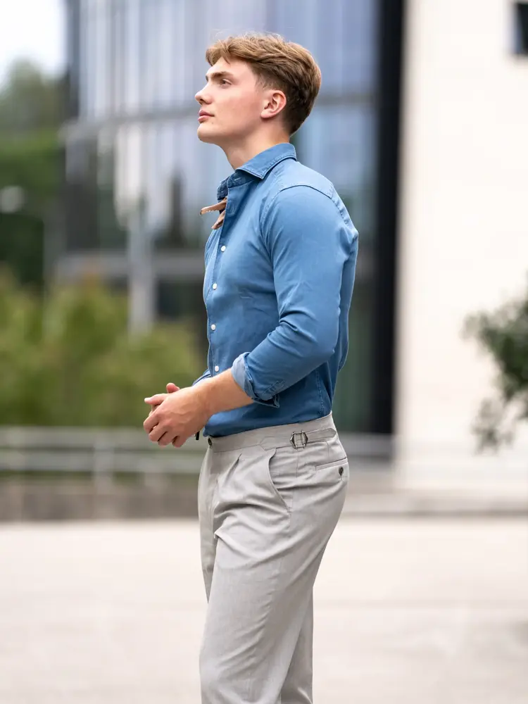 Blå skjorte 2199,- fra Follestad | Blå dobbelspent blazer 6799,- fra Follestad.