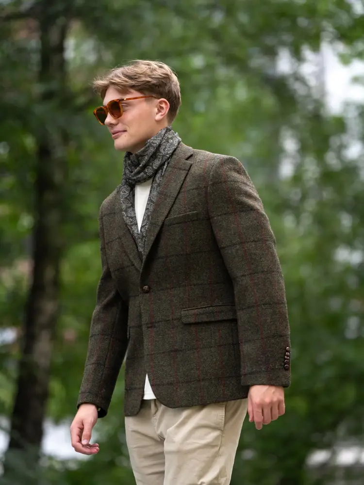 Rutete blazer 4899,- fra Hanskeriet | Mønstret skjerf 1199,- fra Hanskeriet | Solbriller 849,- fra Hanskeriet.