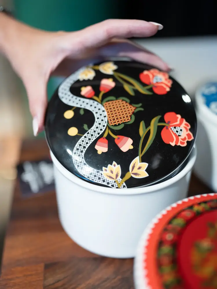 Turen gikk videre til Embla bunader, der Elen la merke til disse fine smykkekrukkene.