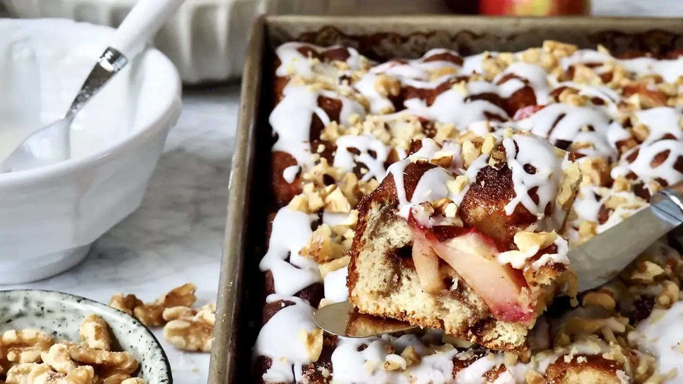 – En ny variant av eplekake. Dette er en søt foccacia med kanelfyll og epler. Skikkelig godt og enkelt å lage.