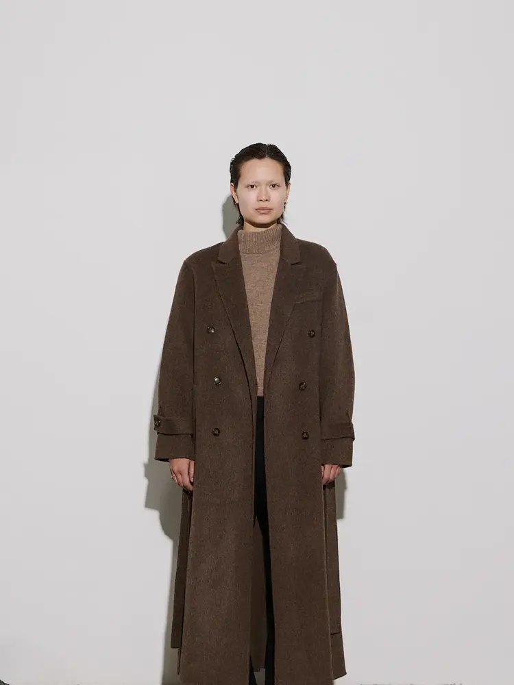 -Den lange ullfrakken, Saville coat, og den beige jakkeblazeren, Form, som kan styles med jeans til hverdags eller i matchende skjørt og høyhalset under. Et langt skjerf, en børstet delikat cashmere-genser med flashback til 90-tallet og selvsagt Iceland coat er andre favoritter.