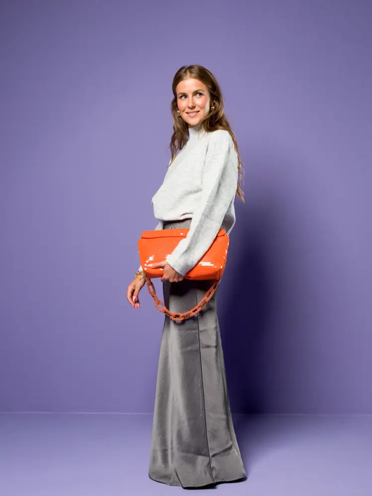 Nina er blitt kjent for sin herlige fargebruk, og for sine selvlagde kreasjoner. I rødt fra topp til tå er hun stilig som få. Kjolen fant hun hos Gina Tricot, genseren er fra littSNOB, vesken er fra Mango.