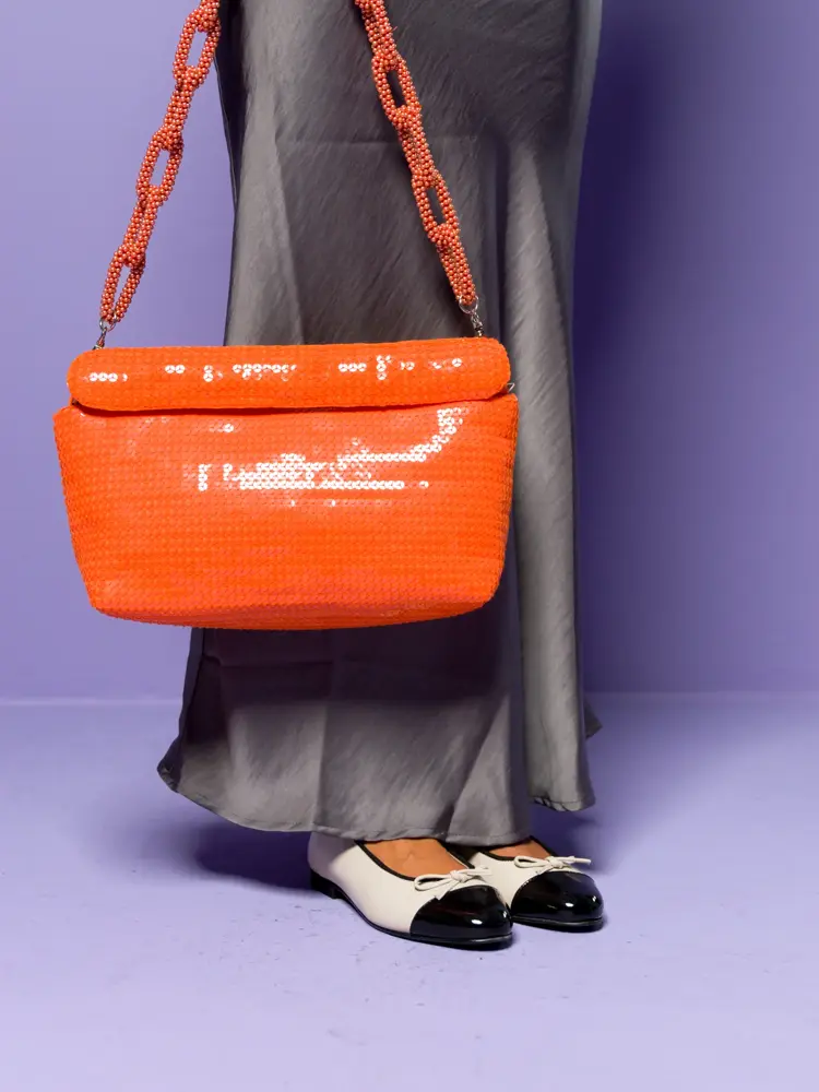 Hun tiltrekkes av alt som glitrer, og viser oss hvordan et enkelt sort antrekk kan pyntes opp med et halskjede, belte og veske.