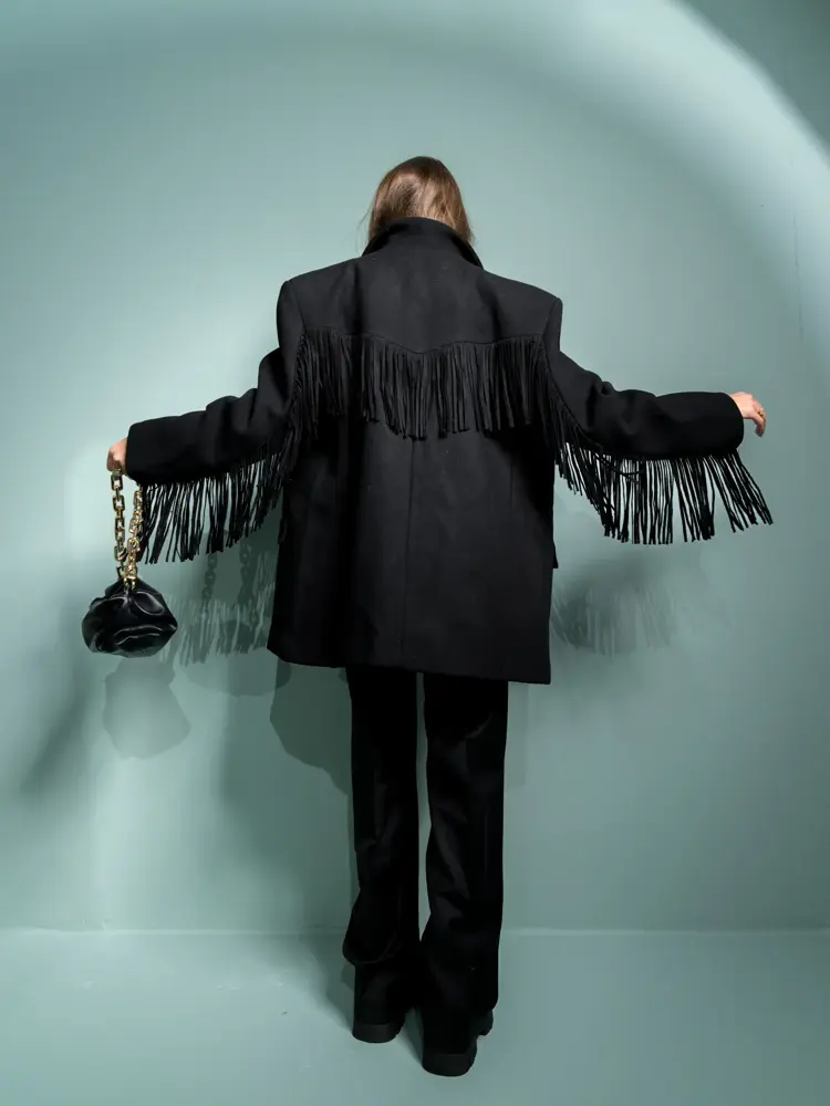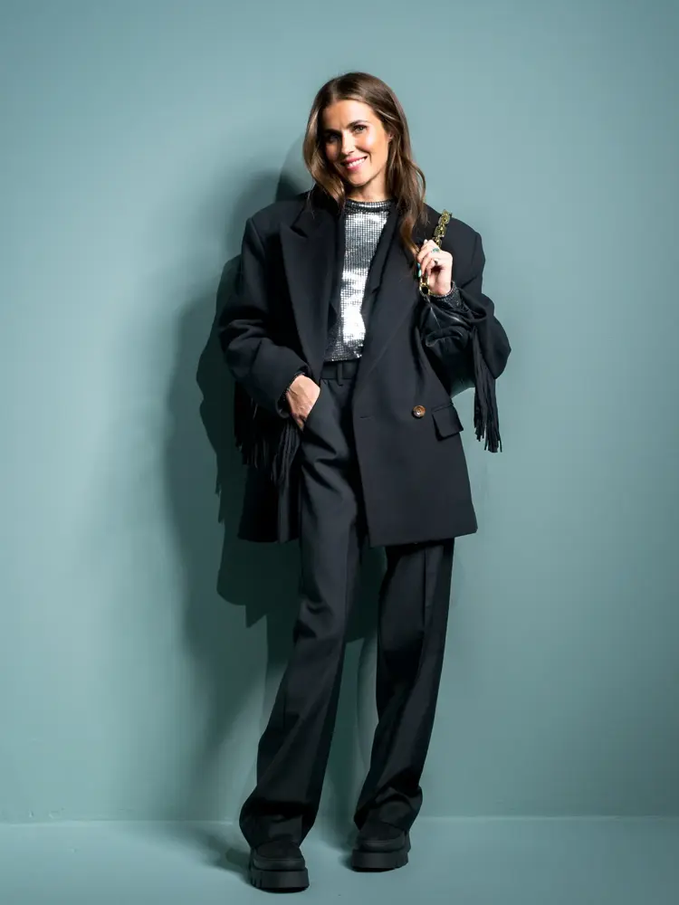 Blazer med frynser og sølvshimmer topp falt Nina pladask for. Ikke helt typisk - akkurat slik hun liker det. Hos The Vibe finner du merker som bla Holzweiler, Blanca, Meotine, Notes du nord, Rodebjer, Tomorrow Denim, Ulla Johnson og mange fler!