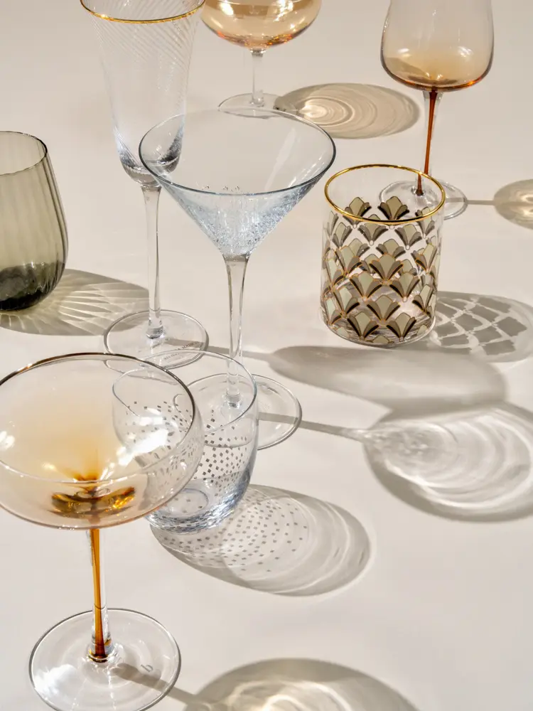 Det finnes så mange vakre glass, som kan bli som smykker på et bord. Tenk utradisjonelt og utvid bruken av de ulike glassene, for hvem sier at du kun kan servere whisky i et whiskyglass?