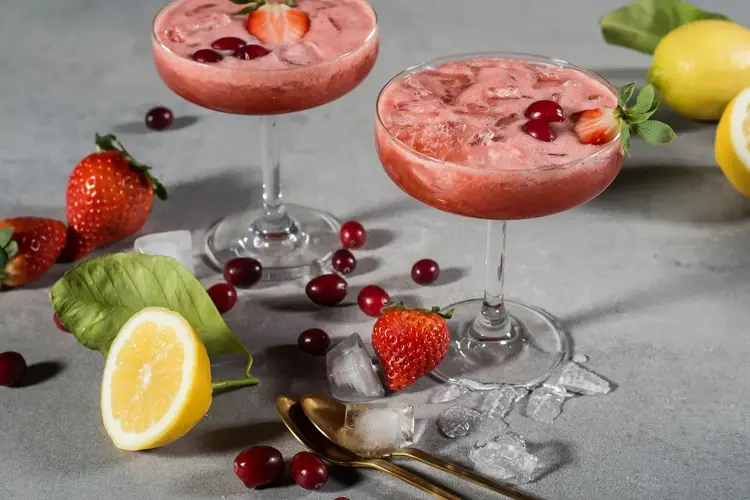 - Kjør tranebærjuice og 3 jordbær til jevn juice. Smak til med sitronsaft. Ha knust is i et pent glass og hell drinken over. Pynt med det siste jordbæret.