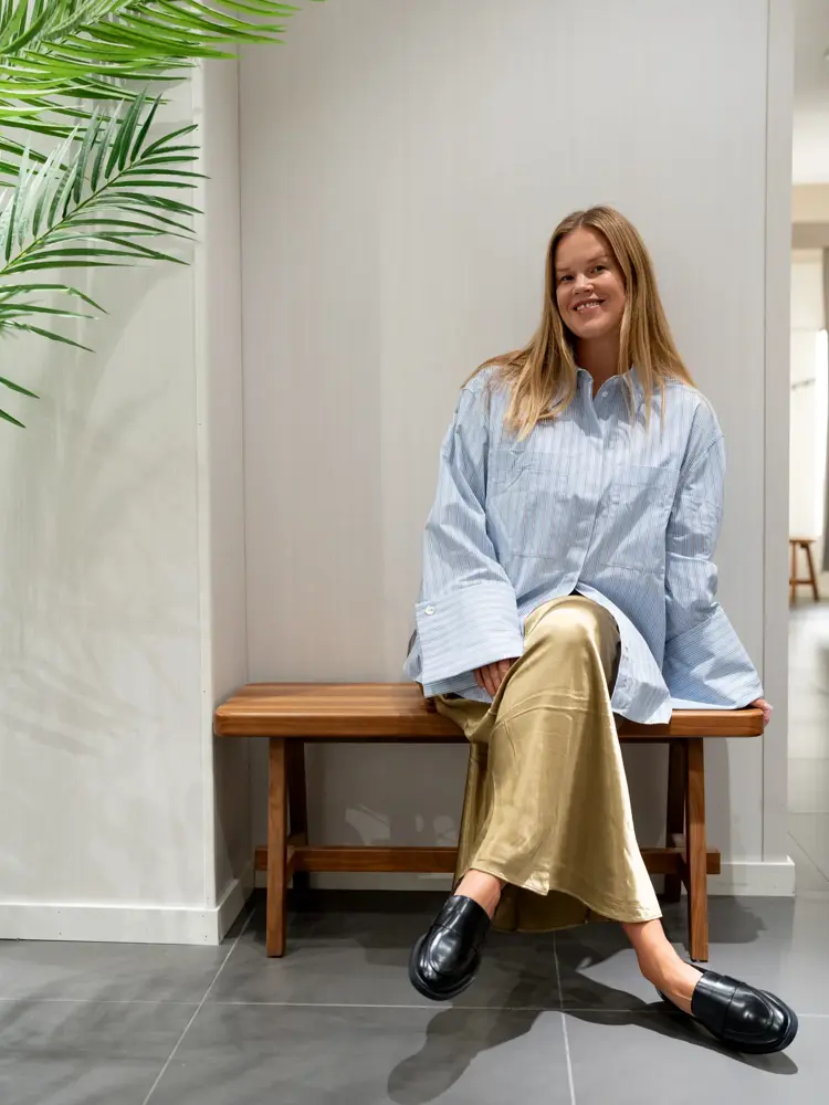 Vi tar med oss silkeskjørtet fra sommeren og inn i høsten. Til en skjorte og loafers får du en trendy look, mens til en myk strikkegenser og boots blir helheten pen og mer formell. Bruk skjørtet til lave eller høyhælte sko med enkle svarte strømpebukser, mønstrete strømpebukser eller fargede strømpebukser. En tynn genser i merinoull og en blazer passer fint til kontoret, og med en collegegenser og bomberjakke får du et avslappet og kult uttrykk.