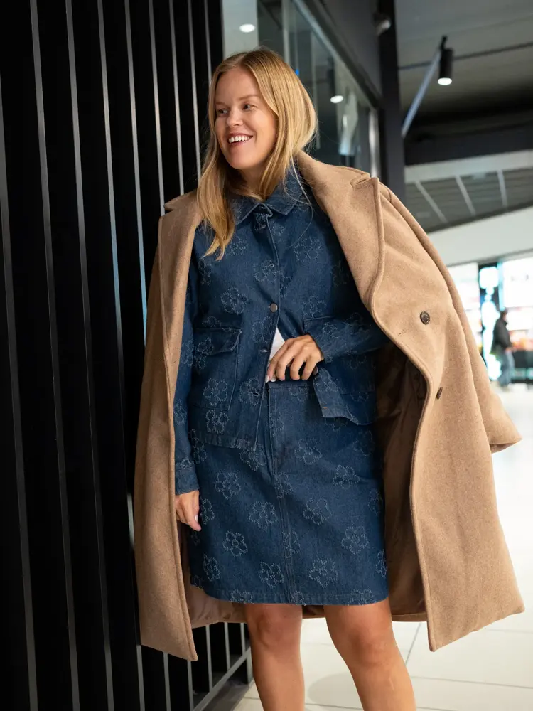 Sett er så fine! Når du bruker et sett får du umiddelbart et antrekk som ser gjennomført ut. Bruk til en enkel t-skjorte eller høyhalset, og kombiner gjerne med chunky boots. Sett farge på høsten med blå denim eller lyseblå ull, sleng en kåpe over og du er klar for dagen. Et sett kan selvfølgelig også brukes hver for seg. Et skjørt til en oversized blazer er fint, mens jakken i settet kan brukes til komfortable jeans eller en kjole for en mer pyntet stil.