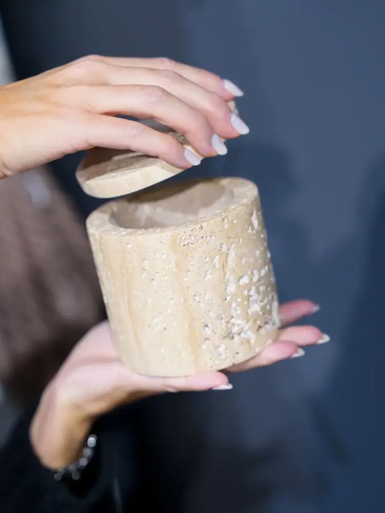 Et og annet til hjemmet er så å si alltid på ønskelisten min, som et deilig mykt sengesett eller fin pynt til juletreet. Jeg er glad i travertin, og denne krukken kan romme alt fra penner til sminkekoster. Mateus Collection lager vakkert servise, og jeg har flere tallerkener og fat fra merket. Koppene er perfekte til en god klunk te, og fatet er like fint til skinke og oster, som til julestek eller fruktfat.