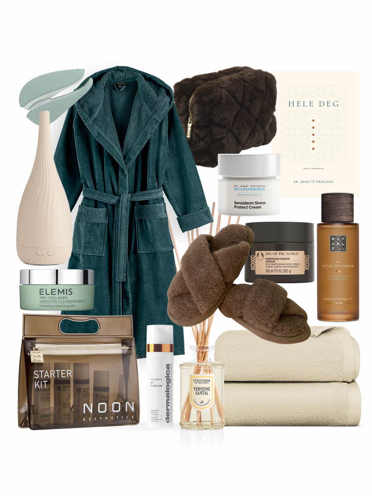 De lekre aromadiffuserne fra Kinsarvik Naturkost setter stemningen med nydelig duft, eller du kan velge duftpinner fra L’Occitane. En morgenkåpe fra Rituals, myke håndklær fra Myyk eller ulltøfler fra Denim Destination er gaver hun kan bruke i mange år. Fyll en fin toalettmappe med produkter du vet hun liker, og legg ved en god bok – så er alt klart for en avslappende kveld hjemme.