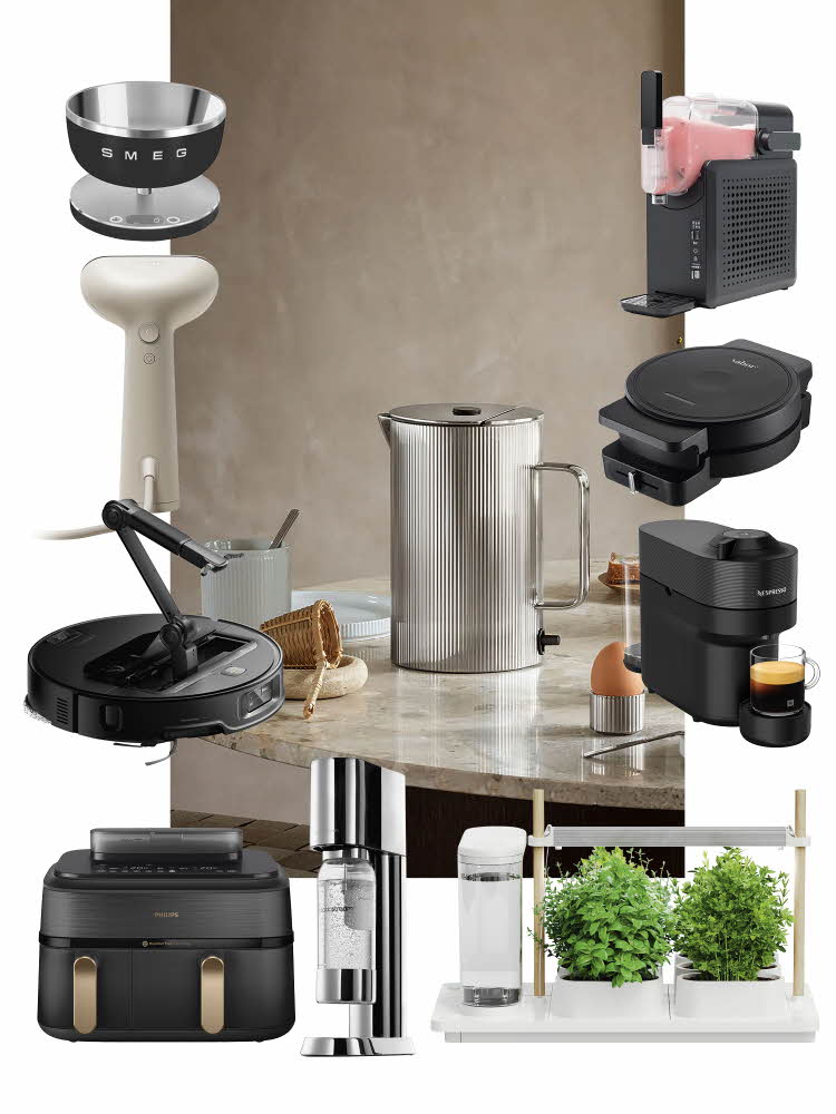 En lekker vannkoker pynter kjøkkenbenken, og den stilige kjøkkenvekten fra SMEG er både praktisk og dekorativ. Du blir garantert populær om du legger en slushmaskin under treet. Et vaffeljern blir alltid brukt, og en kaffemaskin redder mange trøtte morgener.