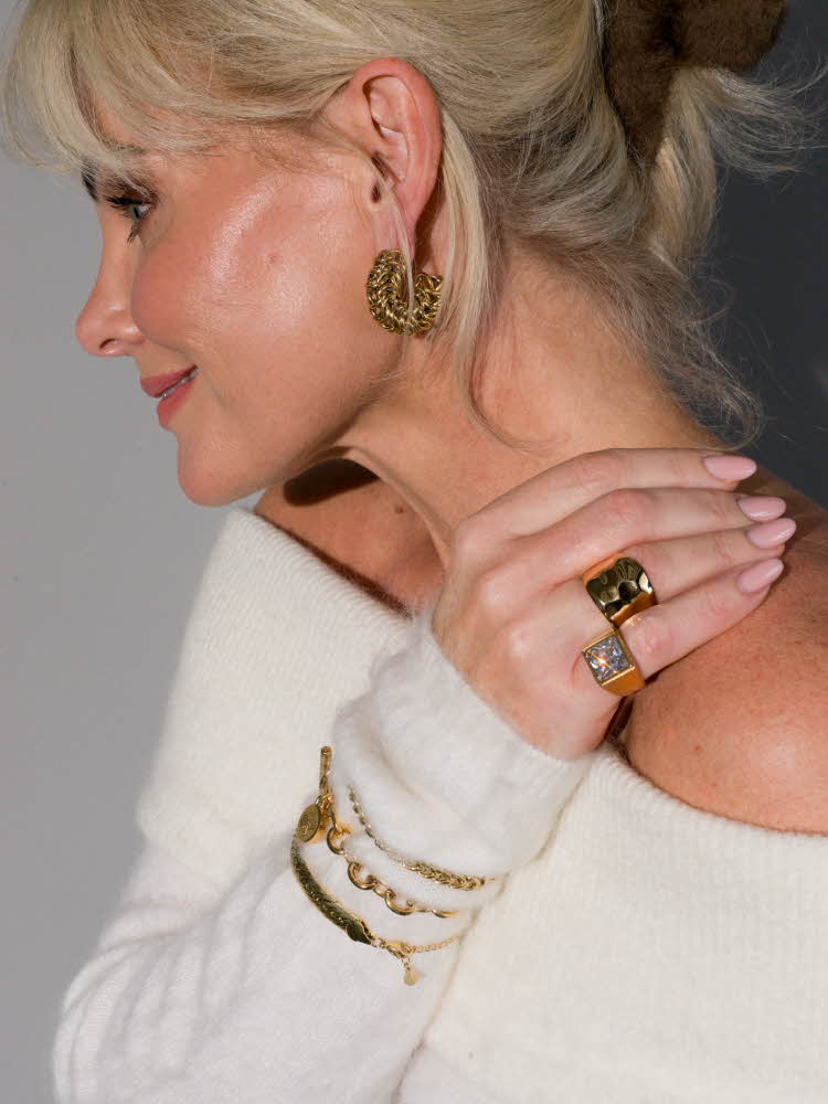 4Women armbånd med lenker 2325,- armbånd pr. stk. 600,- øredobber 700,- ringer 600,- veske 10550,-