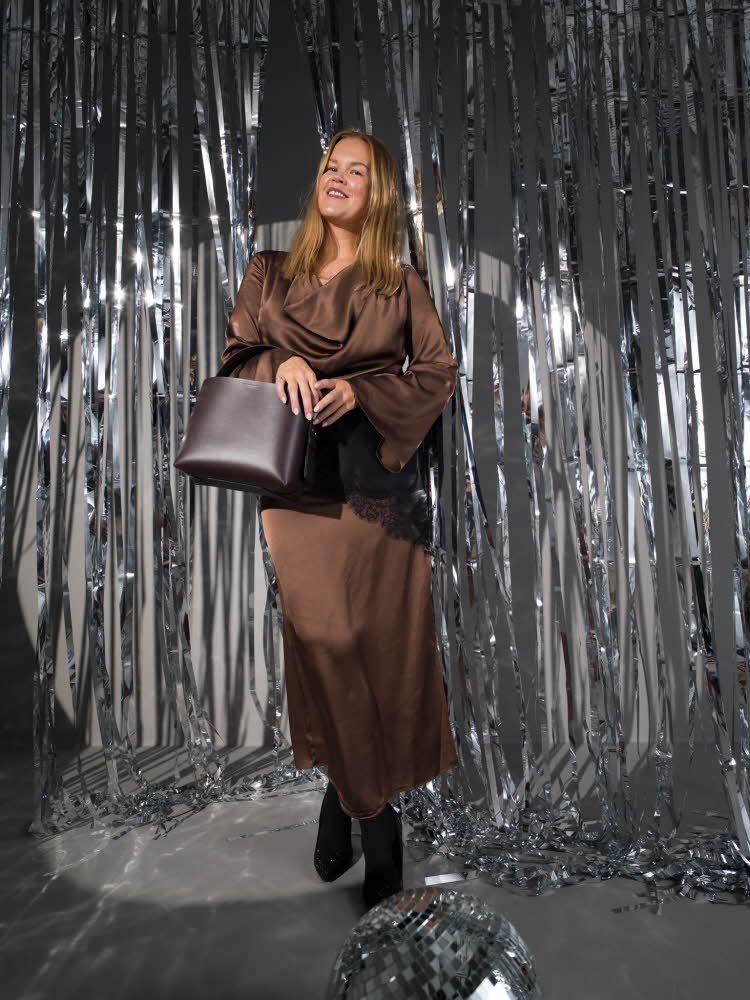 -Det er det som er gøy med julebord. Her ser vi alt, fra ganske hverdagslige antrekk med en liten tvist, til maksimalisme som topper glamourbarometre. Elementer av strass og paljetter gir full effekt i så måte. Med et paljettantrekk kan du gjerne tilføye en liten fløyelsveske eller strassøredobber som prikken over i’en, sier Elen.