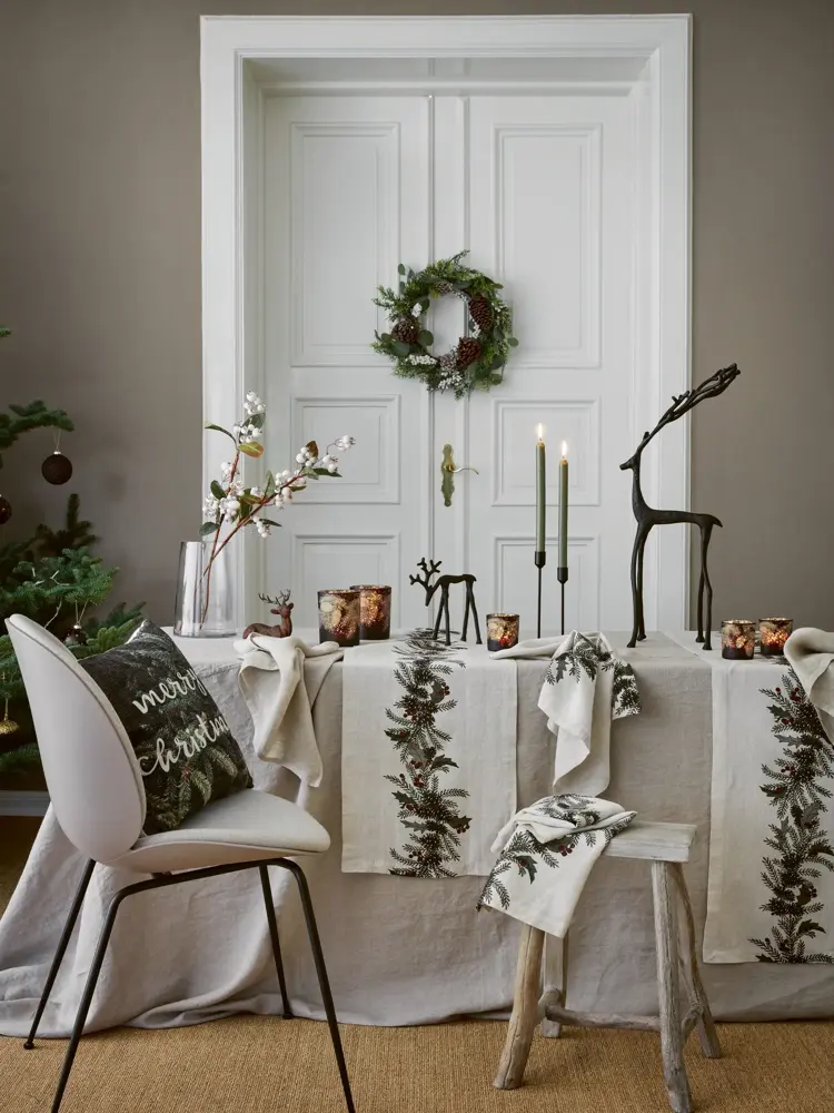 Vila linduk, kr 999,90 / Reindeer pynt, kr 199,90 / Pinecone løper, kr 199,90 / Berries kvist, kr 129,90 / Tibro krakk, kr 449,90 / Alt fra Kid Interiør