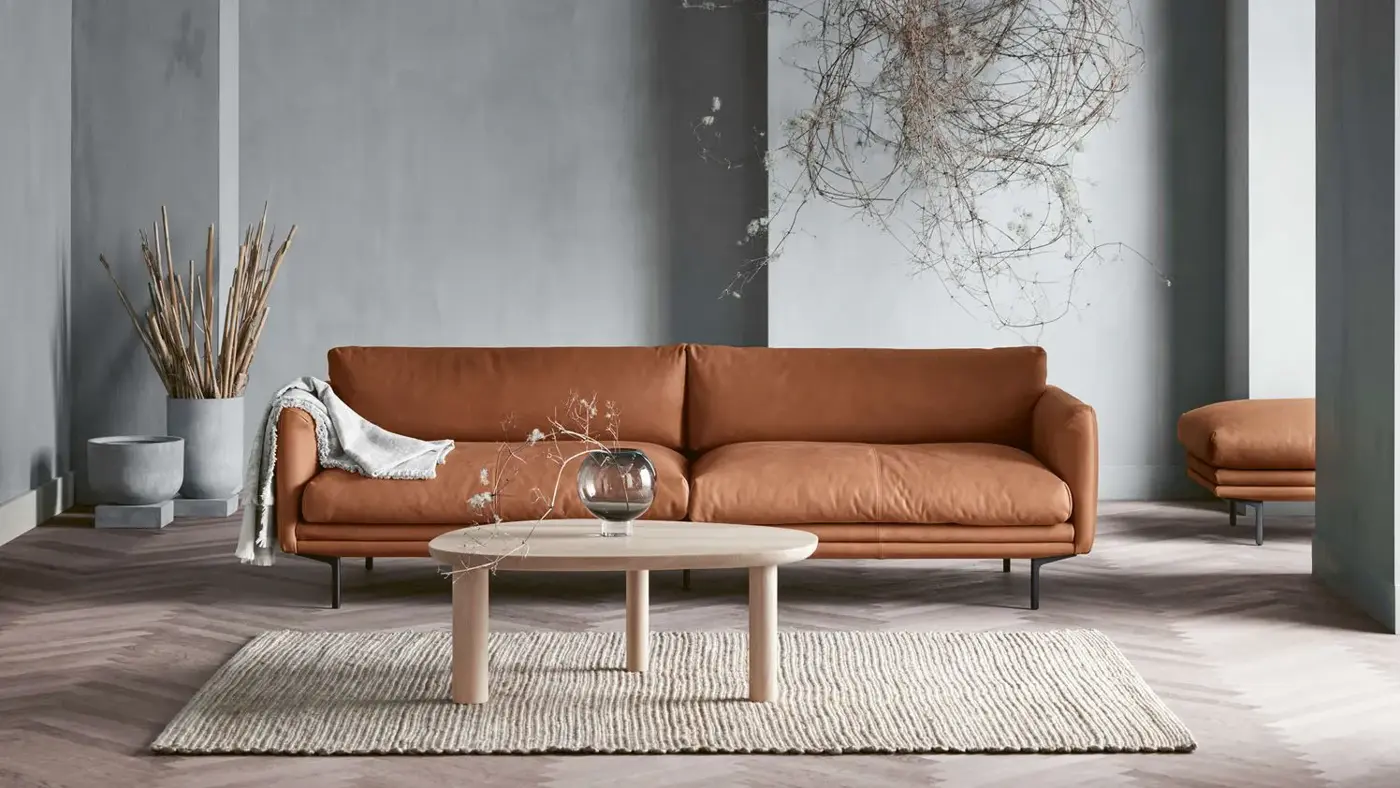 Lomi cognacfarget skinnsofa fra Bolia, kr 87.999,-