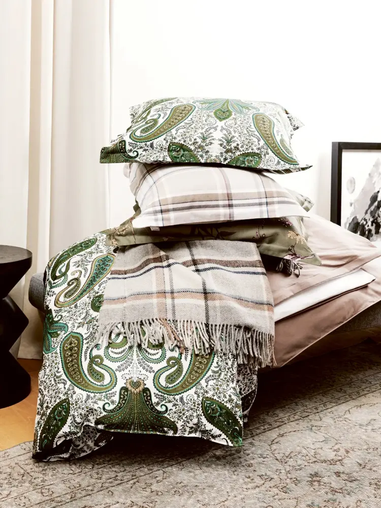 Karen Blixen toppstjerne fra Rosendahl/Kitchn, kr 599,- / Paisley putetrekk fra GANT, kr 400,- / Paisley sengesett fra GANT, kr 1550,- / Rutet putetrekk fra GANT, kr 360,- / Rutet sengesett fra GANT, kr 1300,- / Ullteppe fra GANT, kr 1690,-