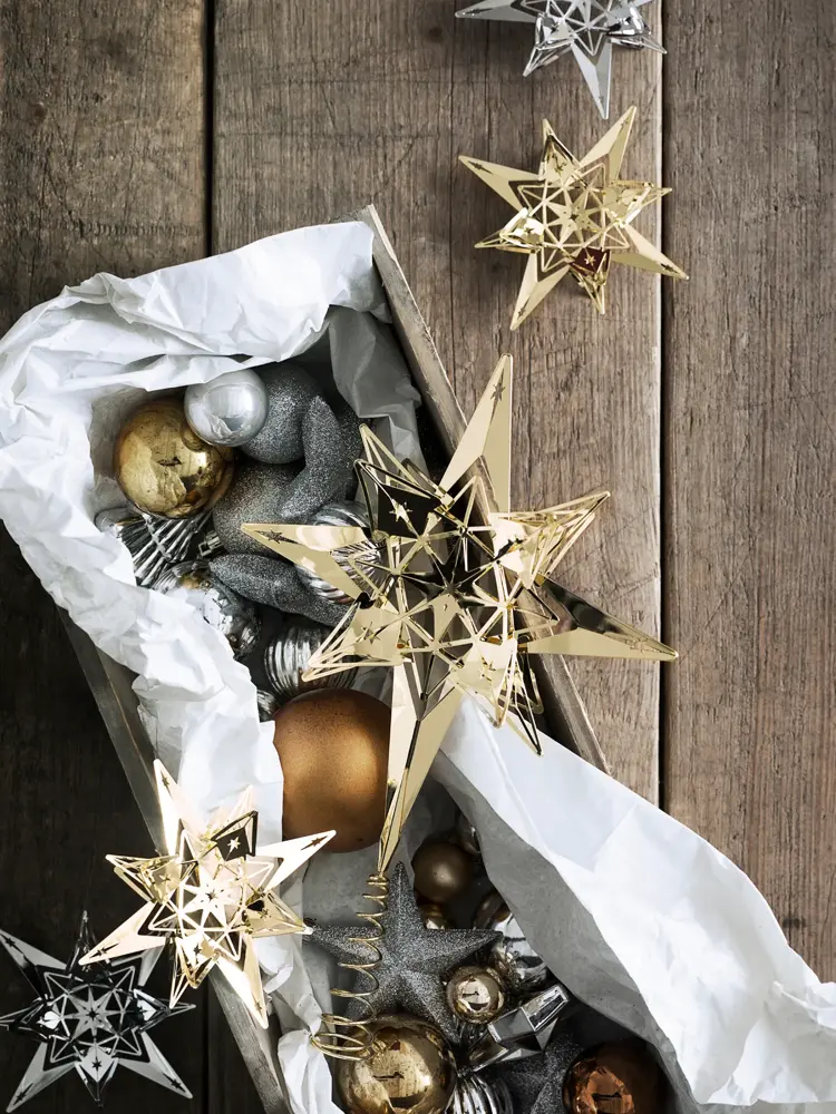 Kombiner gjerne med pyntegjenstander i forgylte materialer, jordfarger og dekorative lys.