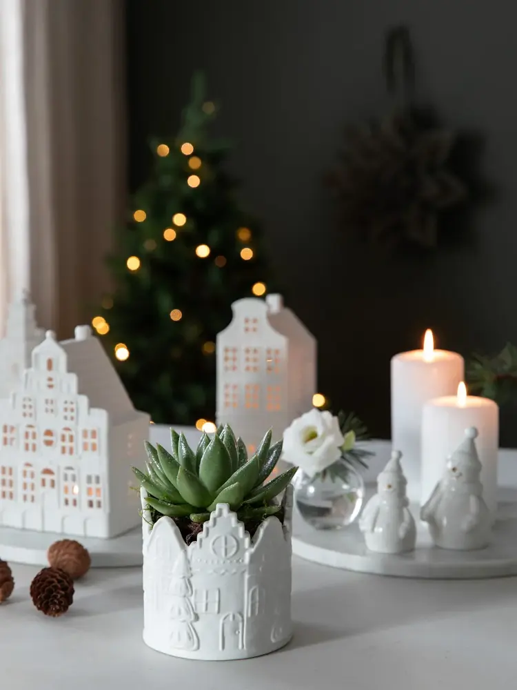 Hva er vel hyggeligere når det er mørkt ute, enn å tenne lys og starte med de tradisjonelle juleforberedelsene? De siste årene er det mange som har gått over til å pynte med hvitt til advent, noe som gir et delikat og rent uttrykk. Gull, sølv og grønt passer fint sammen med det hvite, og gir en følelse av glitrende vinter.