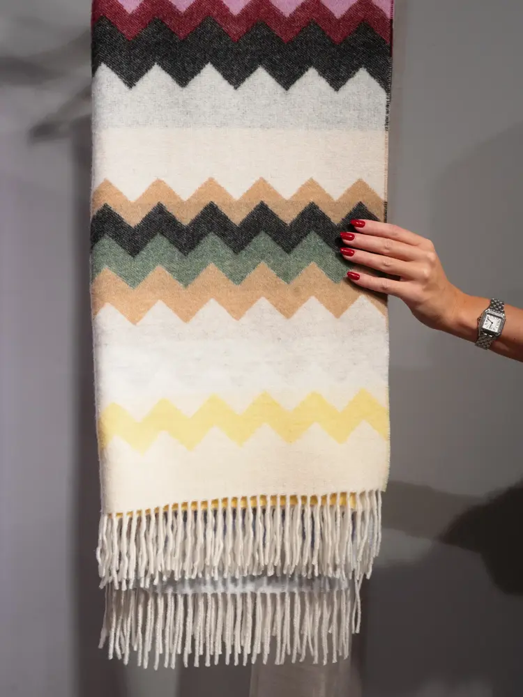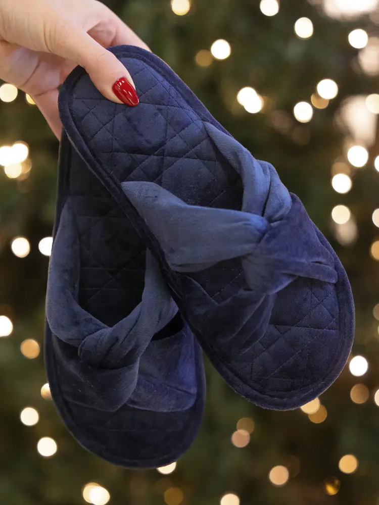 Venstre: Fløyelstøfler fra Hunkemøller, kr 265. Høyre: Pledd fra Bellas Hus, kr 3920.