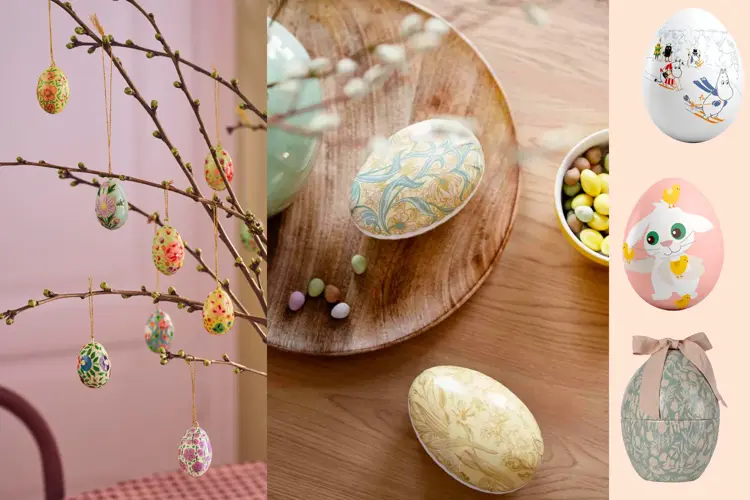 For den påskeglade pynteren er egg et essensielt stikkord. Dette er både en finfin gave å ønske seg, og blir påskepynt å ta vare på slik vi tar vare på julepynt. La de ligge henslengt på påskebordet, heng dem i vinduet eller fra greiner med gåsunger. Det kan bli en skikkelig koselig tradisjon å henge opp påskepynten fra tidligere år. Har du en elegant glassvase? Fyll den med mange små dekoregg. Er det en miks av farger på eggene, blir det en søt og morsom måte å pynte på.