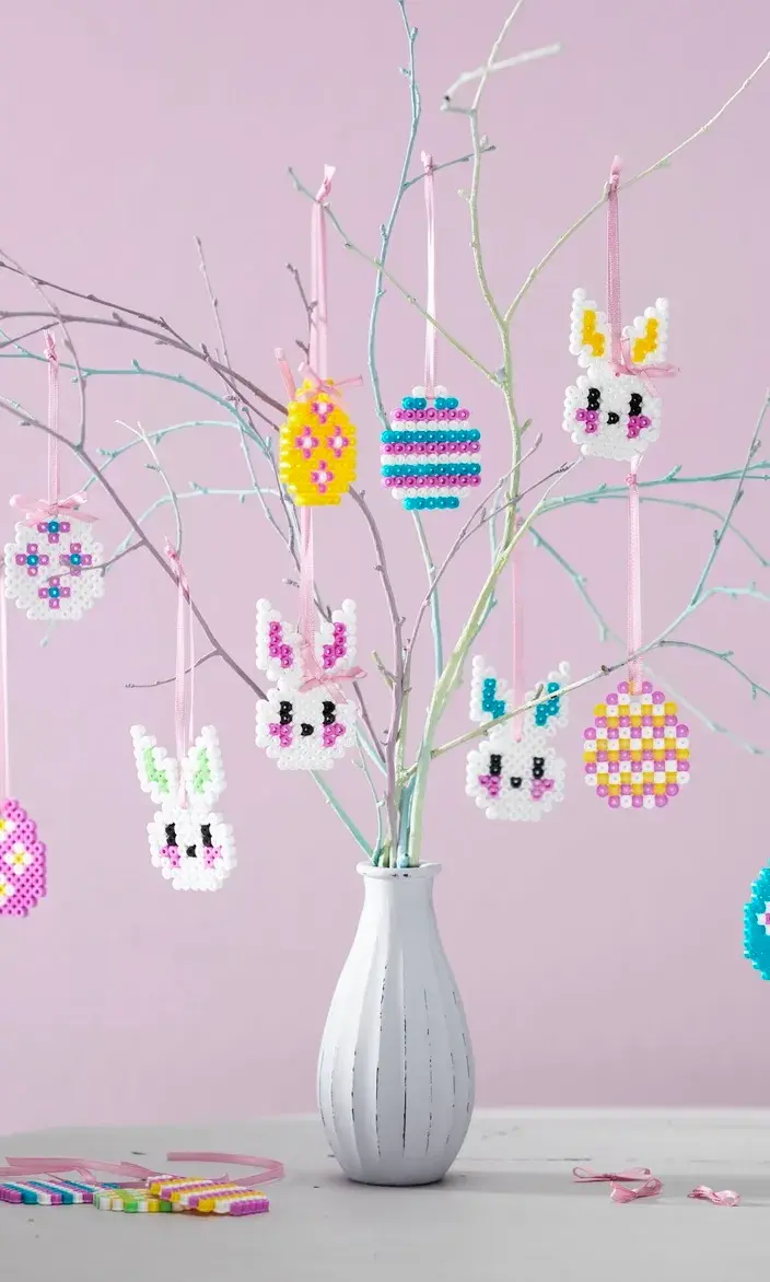Om du elsker å perle er påsken en ypperlig anledning for nettopp dette. Legg perleplater med Hama-perler til flotte dekorasjoner og pynt til å henge opp, lag fine eggeglass av trekuler eller søte påskeegg av rocaillesperler.