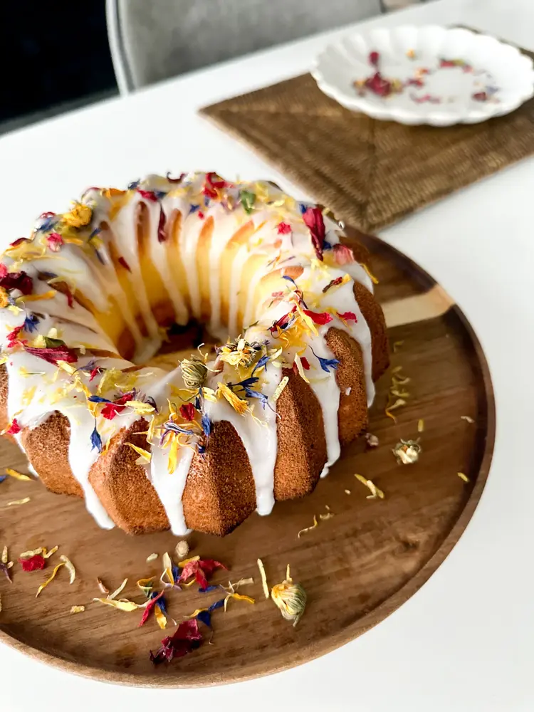 Skal du overraske med en kake til kaffen etter en dag ute i frisk luft kan jeg anbefale en deilig formkake. Her brukte jeg en silikon form med mønster som gjør det litt mer imponerende. Denne gangen brukte jeg to poser med Toro Lyse muffins mix, presset en hel sitron i røren og vips så ble det en saftig kake. På toppen tok jeg glasur med sitronsaft – så frisk og digg. Også er denne miksen glutenfri! På toppen ble det pyntet jeg med spiselige blomster, lekkert og veldig enkelt!