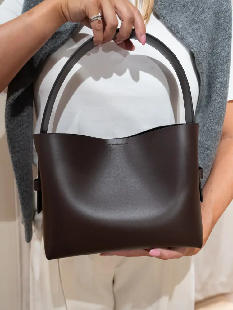 Som nevnt er brunt en trendfarge, og den vil holde stand i og gjennom høsten. Fint det, for brunt er kjempefint til svarte strømpebukser, også. Her holder vi stylingen sommerlig ved å sette sammen det brune skjørtet med hvitt tilbehør - en singlet og en blazer med korte ermer. Semskede loafers er perfekte kompanjonger, og gir et antrekk som er passe formelt, men absolutt pent et lite løft.