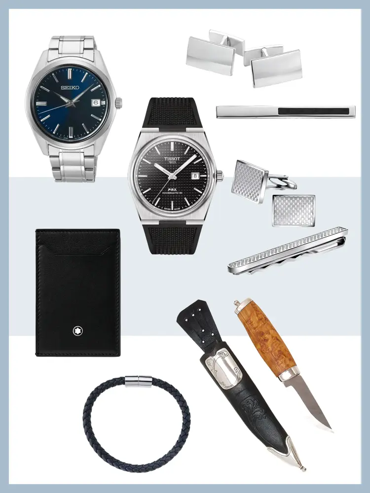 Til gutta er klokke en klassisk gave de kan ha hele livet. Og nå som de er på terskelen til voksenlivet, er det kanskje på tide med mansjettknapper og slipsnål. Kniv til bunaden må være perfekt om han har bunad.