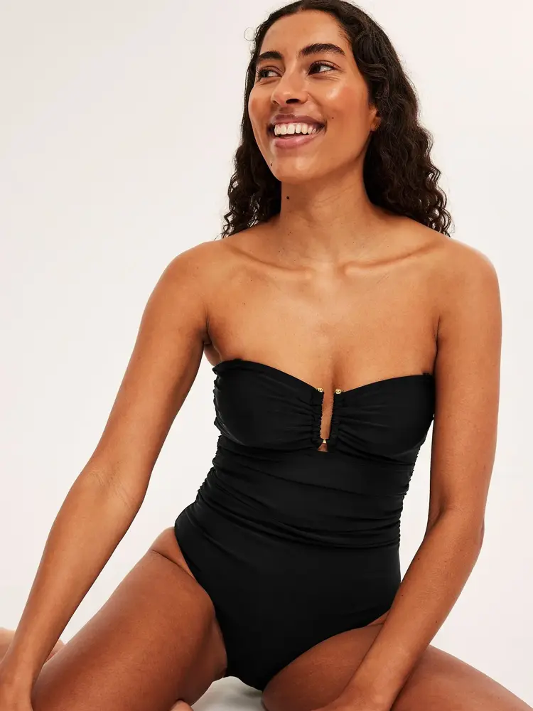 Svart tubebadedrakt fra Kappahl, kr 499. // Tubebikini fra Bik Bok, kr 99 for overdel, kr 149 for underdel.