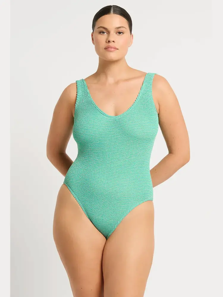 Sjøen har nådd en passe komfortabel temperatur, og vi kan nå kaste på oss badetøyet, for å kaste oss ut i sjøen. Badetøysmoten er inspirende som bare det, for her finner vi alt fra kule teksturer godt hjulpet fram av lurex, maritime linjer i stripeform, deilige pasteller og særegne snitt som tube og off shoulder.