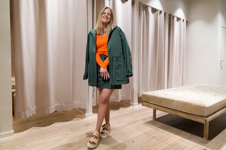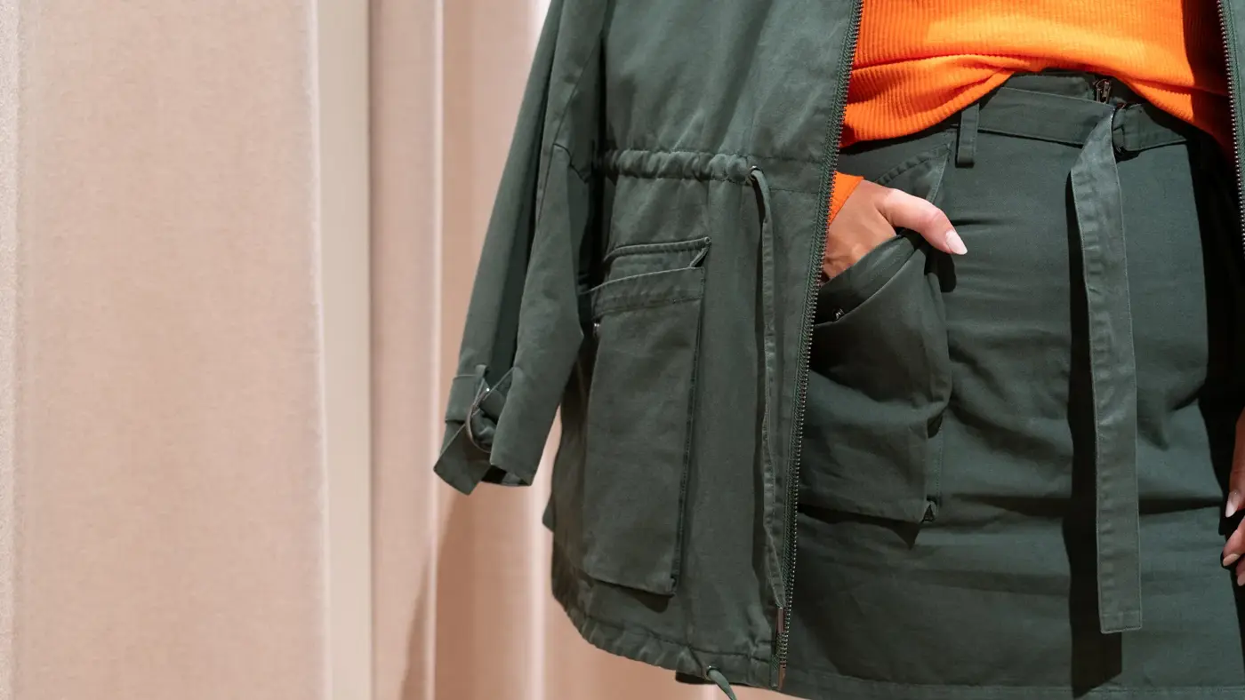 Det korte lommeskjørtet er inspirert av cargobuksetrenden, og jeg er helt med! Tilfør iøynefallende farger til et sett med romslig jakke og lommeskjørt, og chunky komfortable sandaler er fint skotøy til. Det samme er sneakers og ankellange sokker. Et par enkle flipflops er også supre til.