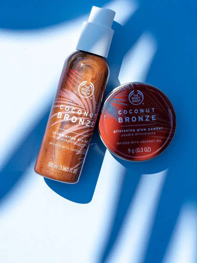 Shimmerolje fukter og gir samtidig fin glød til kroppen. Også lukter den godt av kokos.