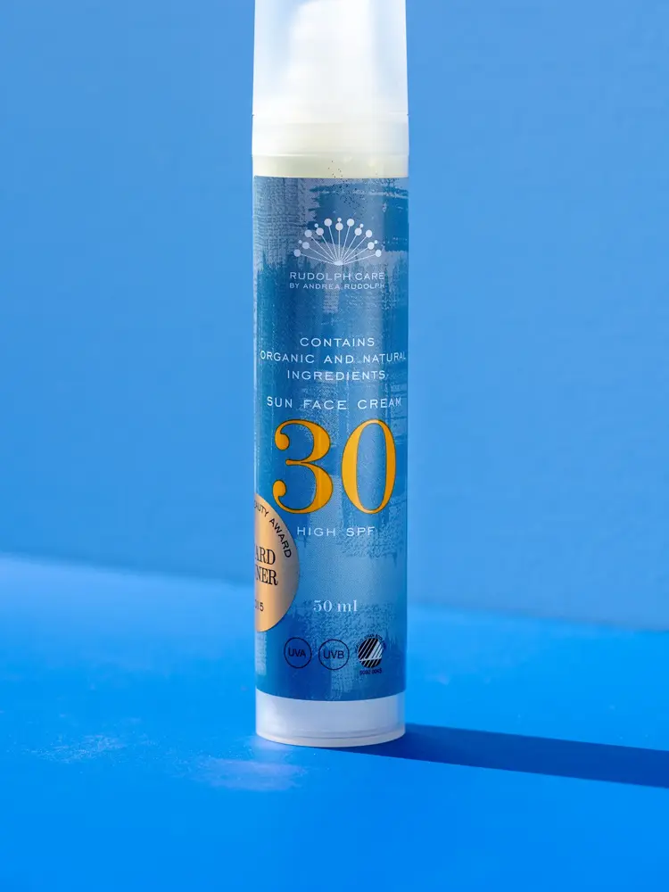 Rudolph skincares solkrem har vunnet priser og er super til sensitiv hud. Denne er til ansiktet og har en solfaktor 30.