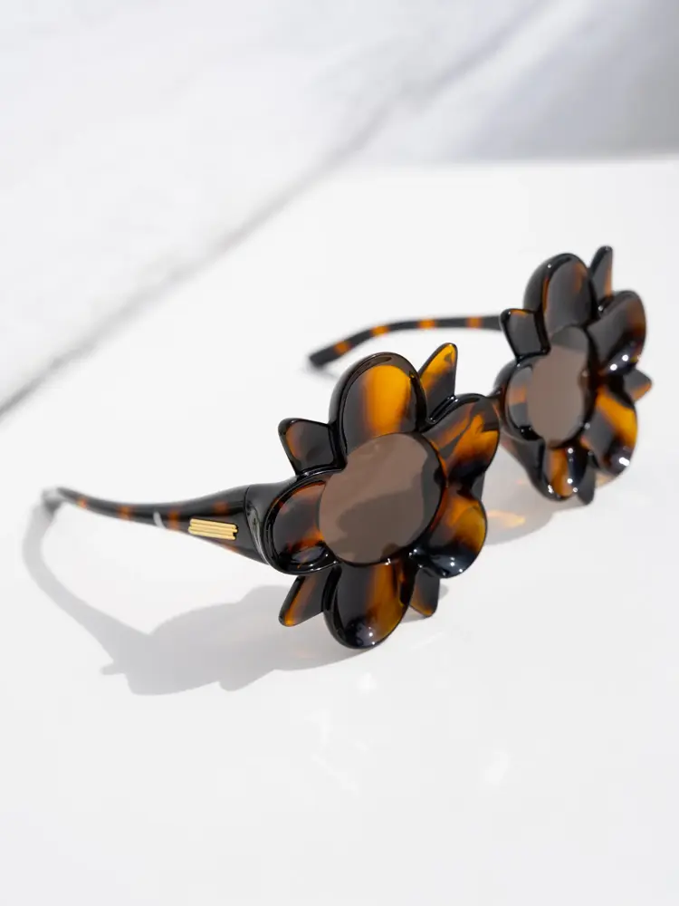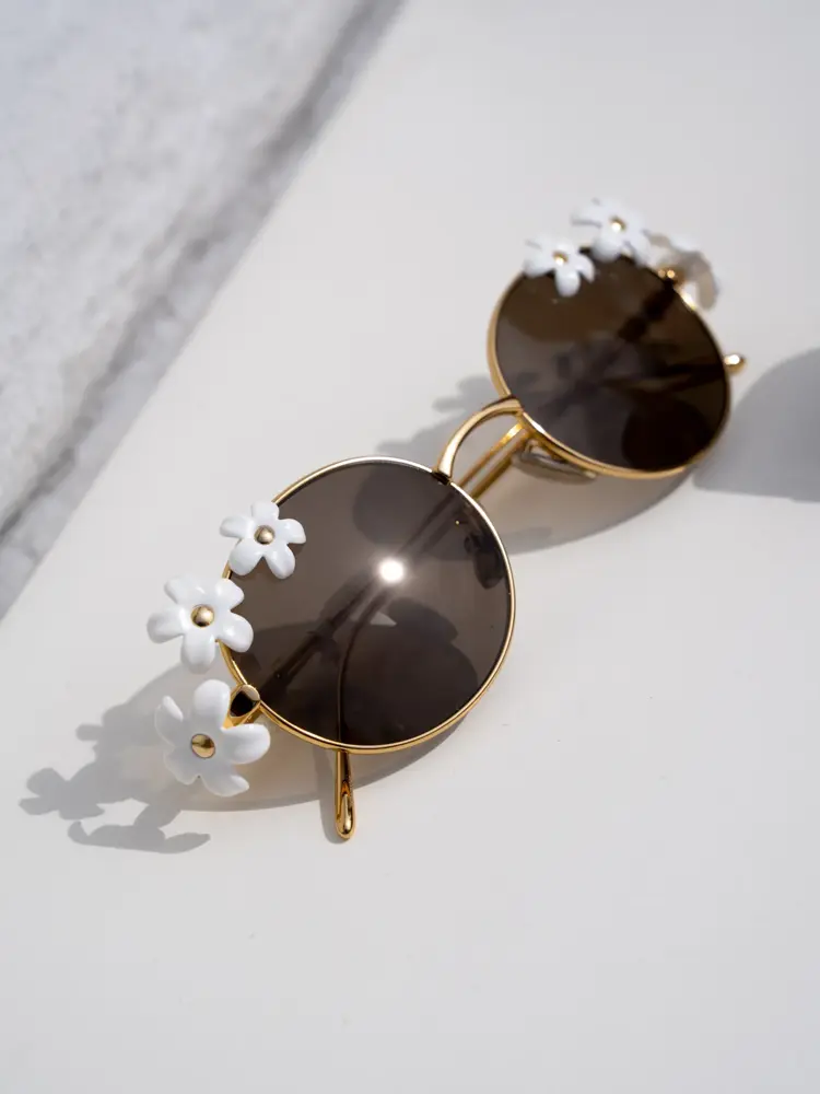 Vil du ha et skikkelig statement til å gi deg skygge fra sola, er det bare å følge med nå. For hva med blomstrende pynt på solbrillen? Eller avrundende solbriller som nærmest går rundt hele ansiktet ditt? Eller briller der hvert øye blir som en blomst? Det er morsomt og vågalt, det er bokstavelig talt noe superstjerneaktig over dem, og vi elsker det.