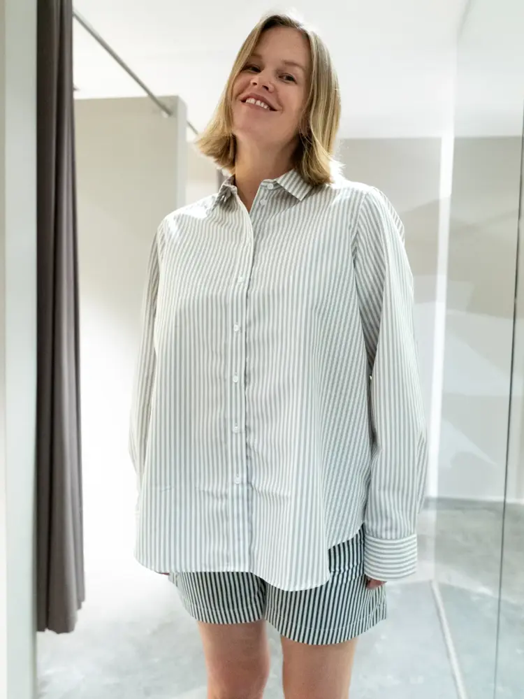 Stripete sett fra Julie Josephine hos Mark + Brandy 2100,- for skjorte og 2300,- for shorts | Stripete beige skjorte fra Iben hos Kiman Woman 1900,- for overdel 1599,- for shorts