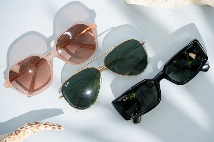 Solbriller med rosa detalj fra Michael Kors hos Brilleland, kr 1500 | Rayban pilotsolbriller fra Brilleland, kr 1390 | Sorte Rayban solbriller fra Brilleland, kr 1000.
