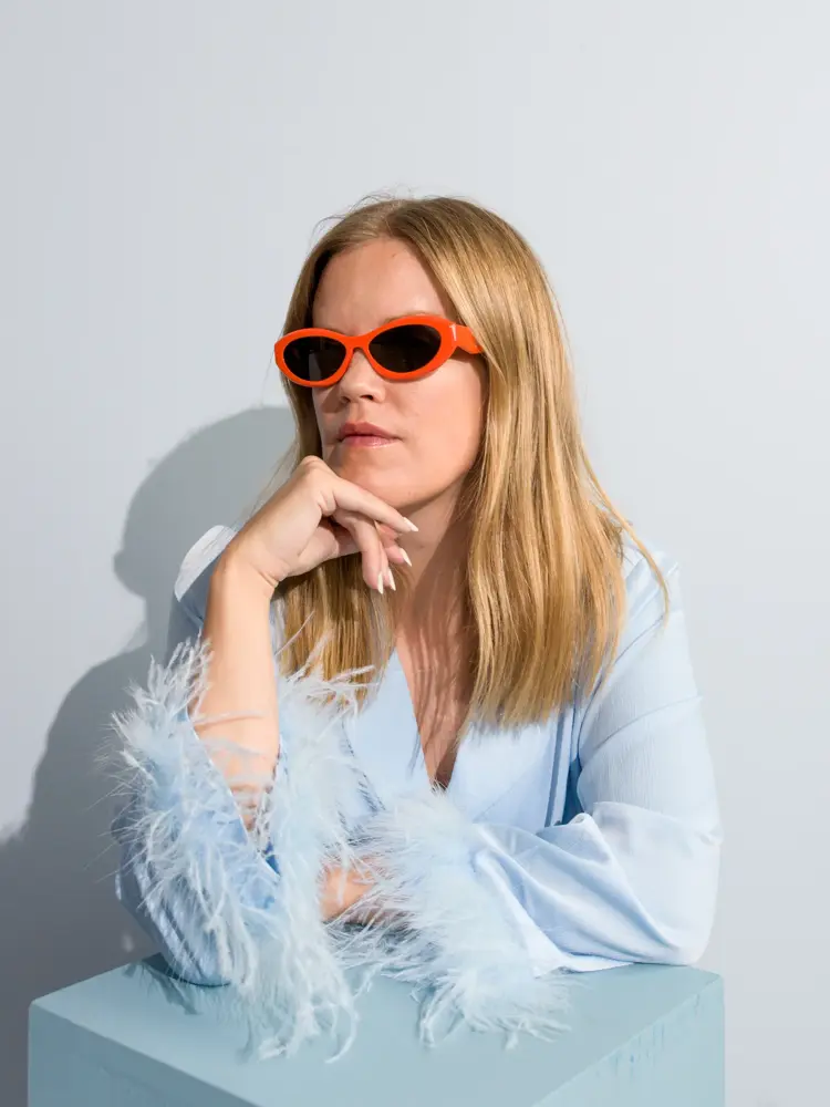 Oransje solbriller fra Prada hos Krogh optikk, kr 4950.