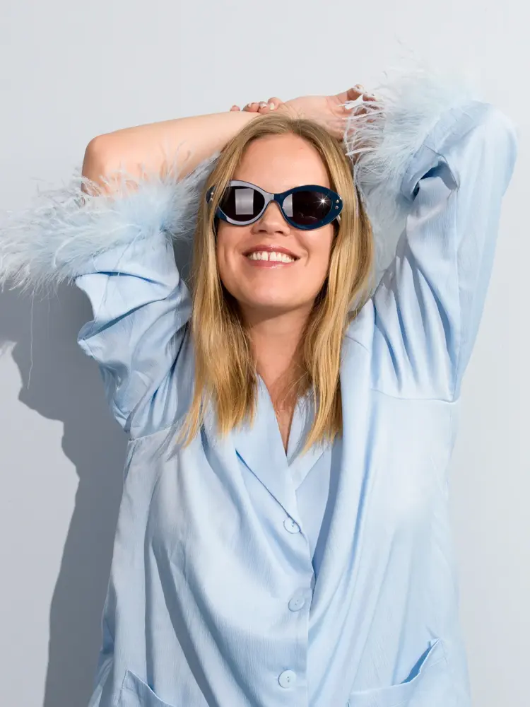 Et alternativ som seiler opp som en underdog til den svarte solbrillen er den blå. Ulike toner av den kjølige fargen er både elegant og annerledes, og vi liker hvordan den skiller seg ut på en enkel og vakker måte.