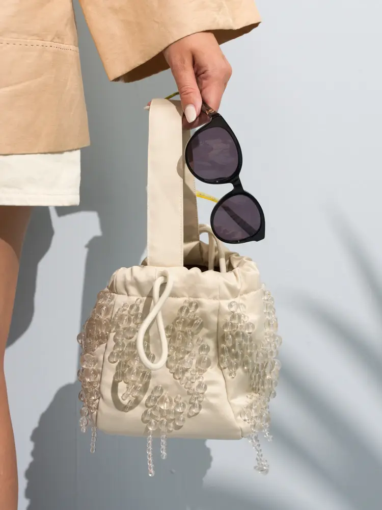 Solbriller fra Converse hos Specsavers, med styrke kr 4495, progressive, kr 8495 | Solbriller fra Victor & Rolf hos Specsavers, med styrke kr 4495, progressive, kr 8495 | Solbriller fra Marc Jacobs hos Specsavers, med styrke kr 4495, progressive, kr 8495. Pris inkluderer innfatning og Specsavers mest populære glass. Du betaler for en brille og får en til på kjøpet. Perlebesatt veske fra Message, kr 1195.