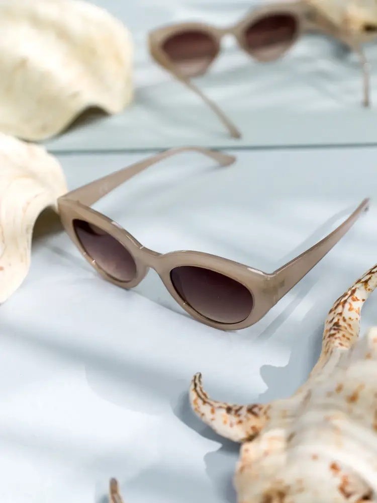 Vi har virkelig fått øynene opp for beige solbriller. Den duse tonen skiller seg ut, men er tilbakelent og sofistikert. Den perfekte miks! Beige solbriller er råfint til blå denim, rosa gevanter eller hvitt fra topp til tå.